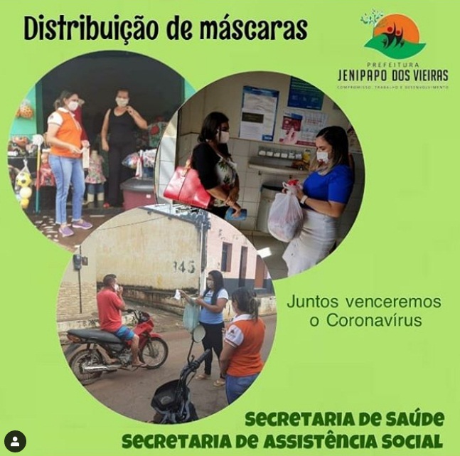 A Prefeitura de Jenipapo dos Vieiras diante da pandemia do novo coronavírus (Covid- 19), e obedecendo o Decreto Municipal N 10/2020 de 20 de Abril do corrente ano, no Artigo 3 – Em que estabelece o uso massivo de máscaras de proteção, descartáveis e caseiras, realizou a distribuição de máscaras de proteção nos principais pontos comerciais da cidade.