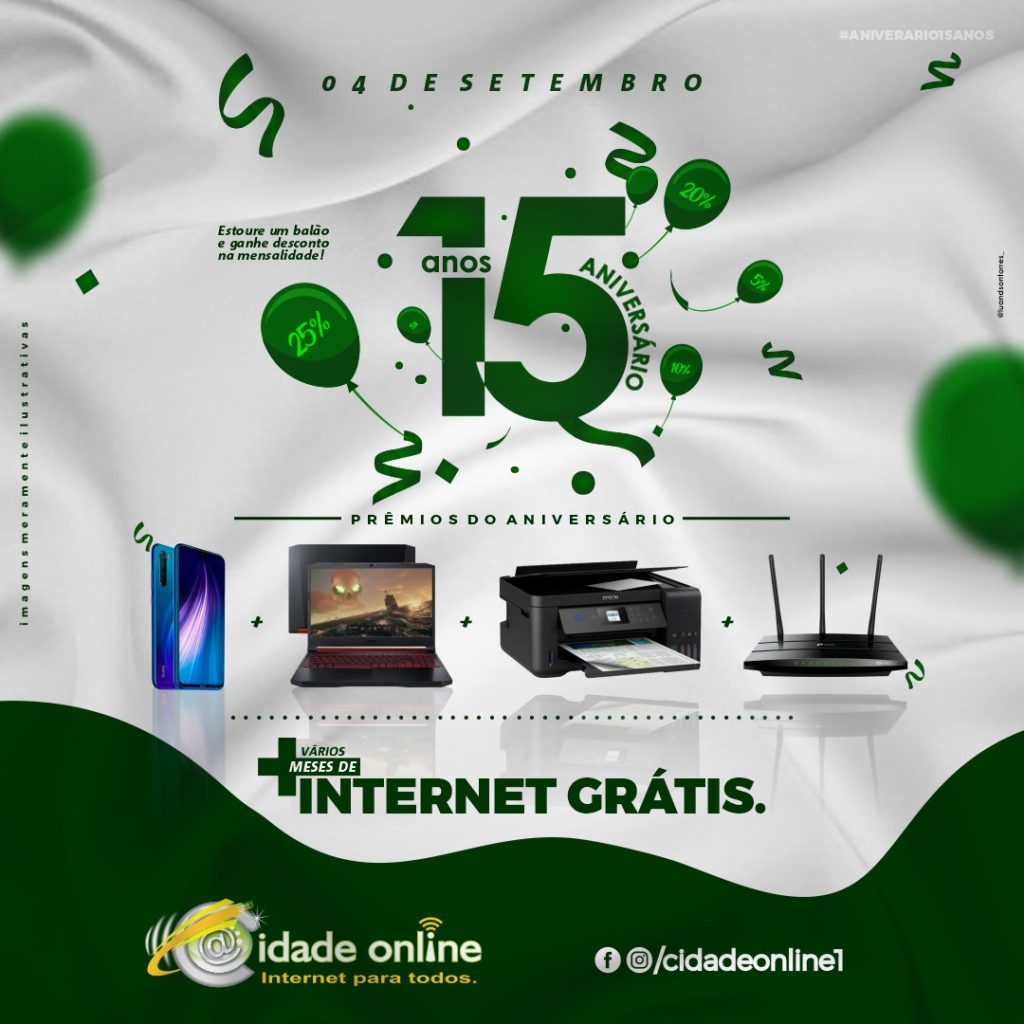 Desfrute da melhor conexão e concorram a todos esses prêmios no aniversário da Cidade Online.