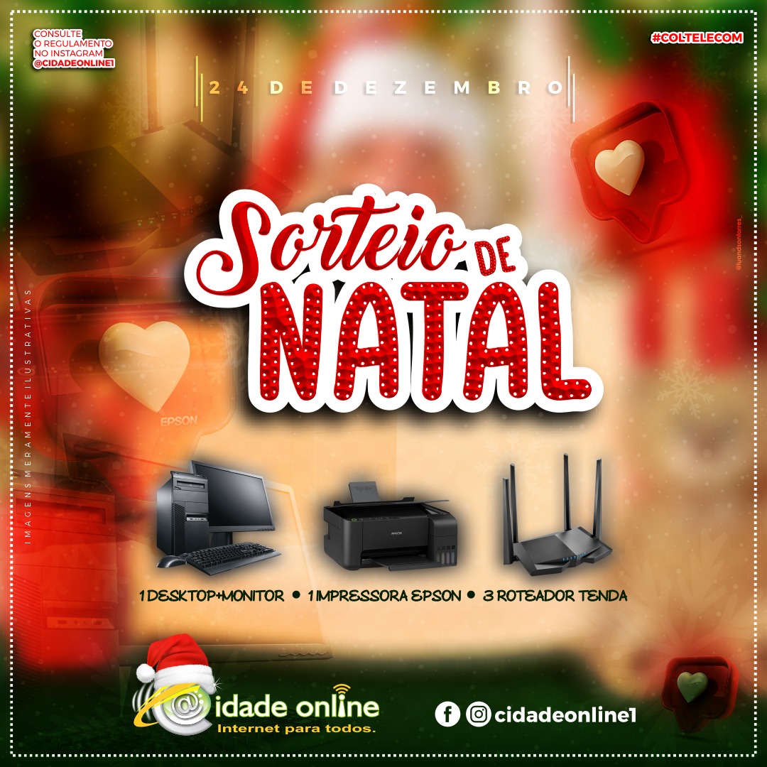 O provedor de Internet Cidade Online realizará nesta quinta-feira, 24 de dezembro, o sorteio de Natal para seus clientes.