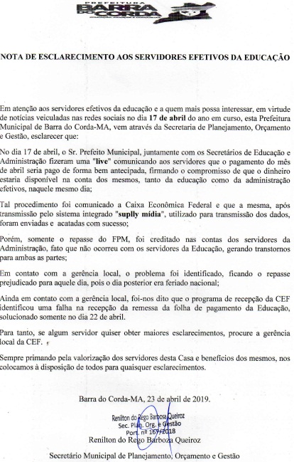 A Polícia Civil de Barra do Corda, coordenada pelo Del Regional Renilto Ferreira e equipe de capturas, cumpriu mandado de prisão preventiva decretada pelo Juiz Antônio Elias de Queiroga Filho, Titular da 1ª Vara desta Comarca, em desfavor de Valdenice de Oliveira Pereira.