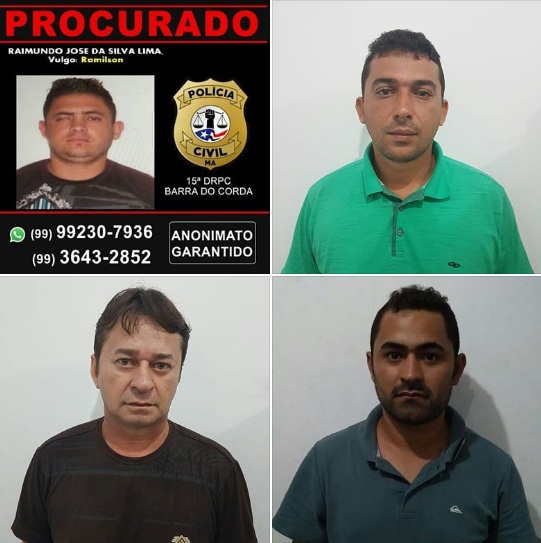 Os quatro mandados de prisão e seis de busca e apreensão foram cumpridos nas cidades de Barra do Corda/MA, Teresina/PI e São Paulo/SP. Os presos foram identificados como Antônio Carlos de Lima Bessa, conhecido como “Gato”, preso em Teresina; Francisco Pereira de Oliveira, conhecido como “Chuluca”, preso em Barra do Corda; e Renan Lima de Sá, preso em São Paulo.
