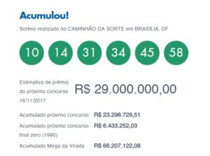 Ninguém acertou as seis dezenas do concurso 1987 da Mega-Sena, sorteado na noite deste sábado(11) em Brasília (DF). O prêmio acumulou e agora pode pagar R$ 29 milhões no próximo sorteio, no sábado.