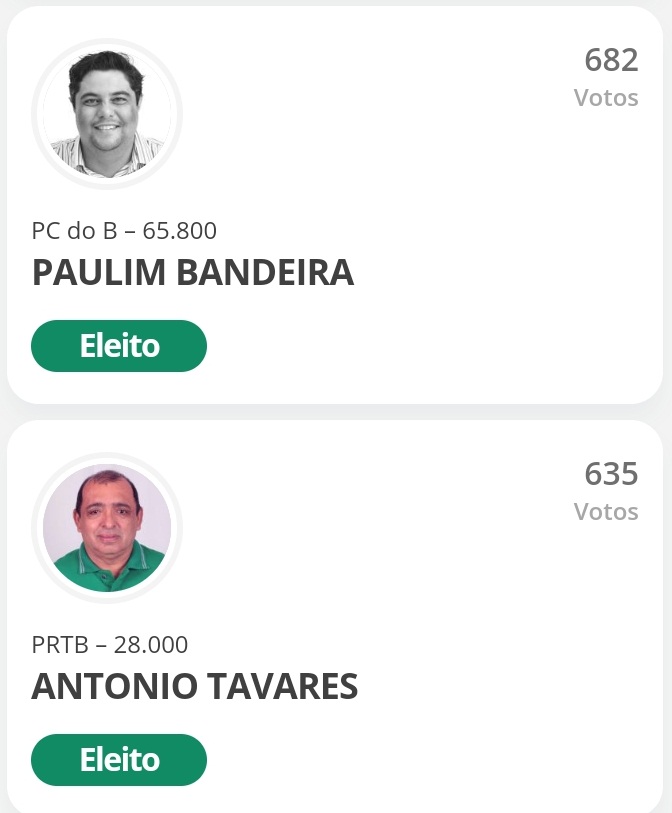 O parlamentar eleito com mais votos teve 1.649 – Rivelino do Alim (SD), enquanto o candidato com menos votos a ser eleito teve 635, Antônio Tavares (PRTB).